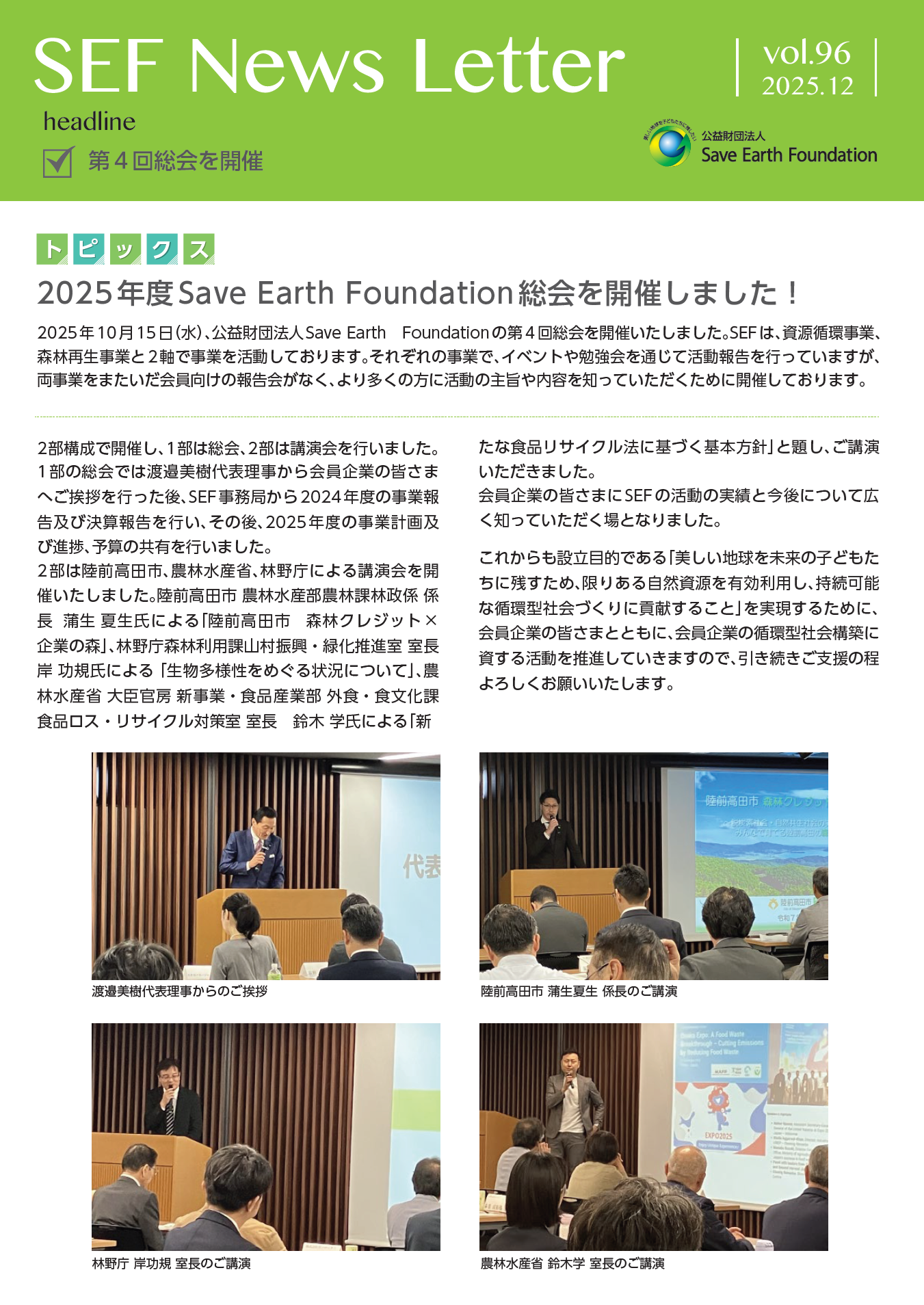 このたび、「ニュースレターVol.96(2025.12月号)」を発行しました。画面下部の画像をクリックして、PDFファイルにてぜひご覧ください。